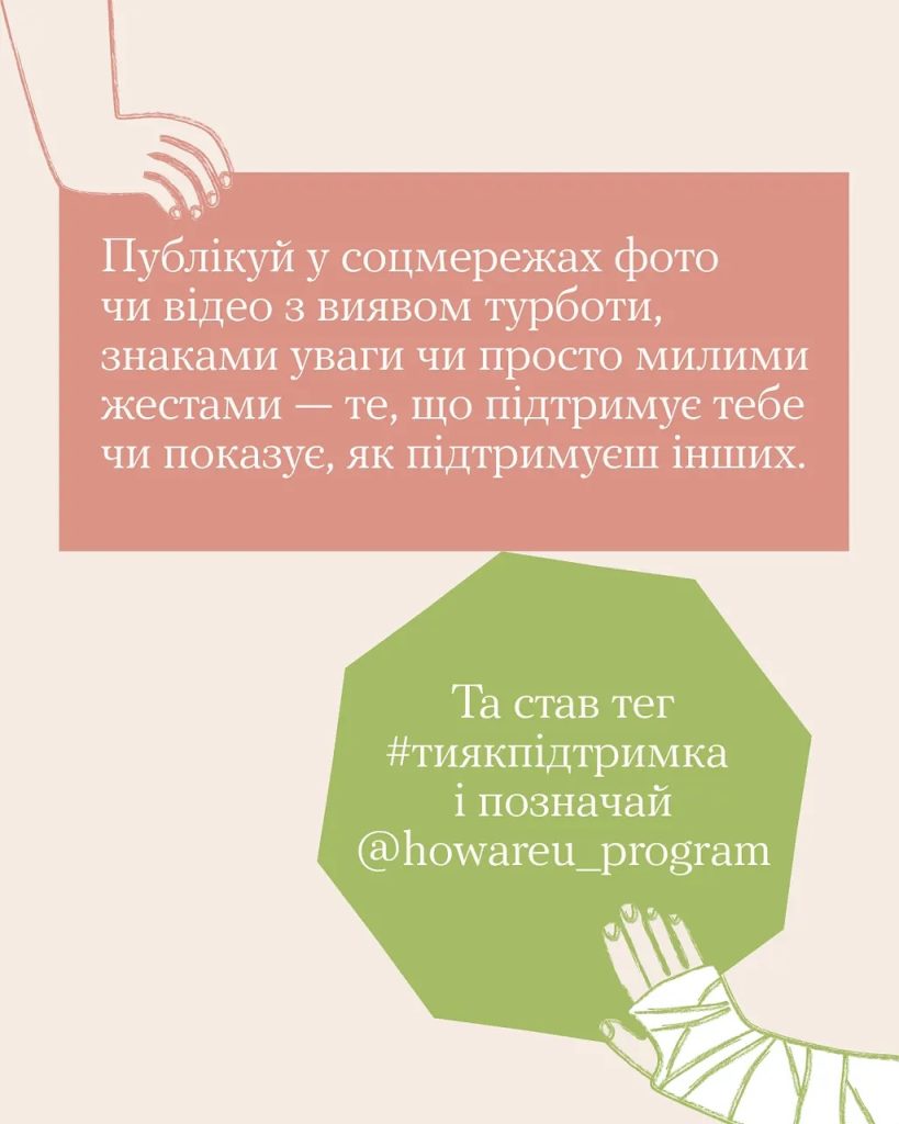 Вони у твоїх руках Покажи іншим, що ти бачиш турботу в моментах. А ми покажемо їх і іншим, а інші — ще іншим… Щоб простягнути руки підтримки тим, кому вона потрібна зараз.